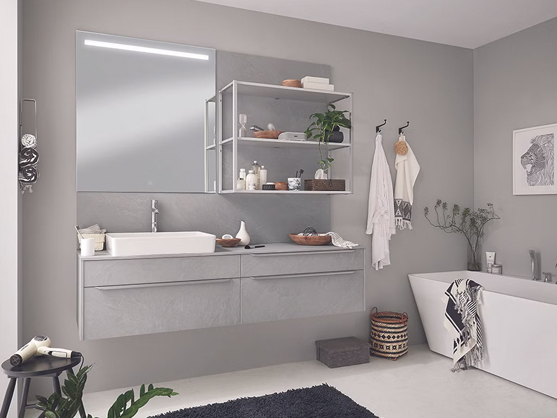 - sanitaires : douche (de plain-pied ou avec un receveur), baignoire (d’angle, balnéo, classique), toilettes (WC suspendus ou classiques)… ;